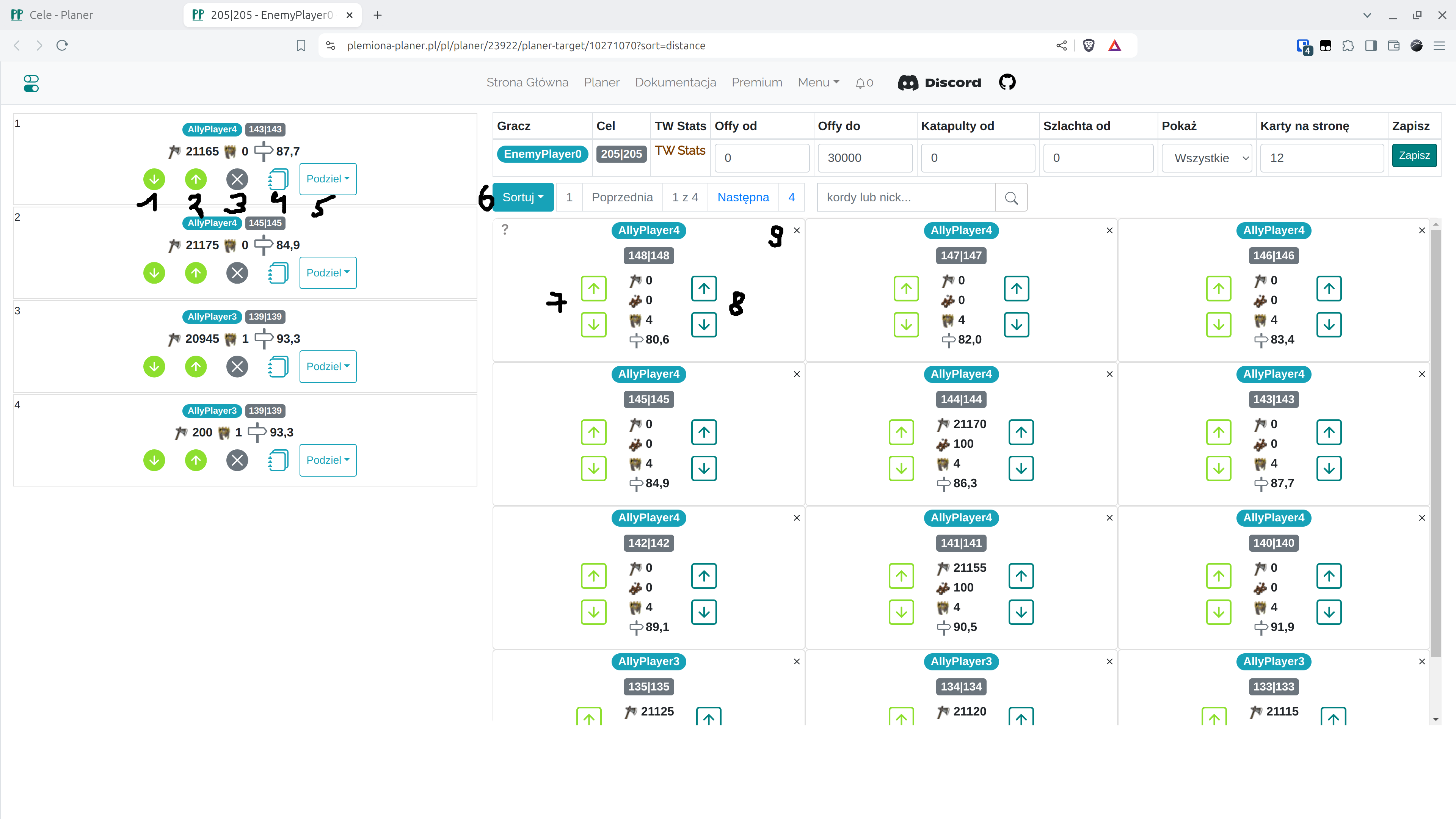 Następny widok to rozpisana akcja bazująca na ustawieniach z poprzedniej zakładki. Istnieje opcja manualnej edycji poszczególnych celów, dodawania celów, wyszukiwania.